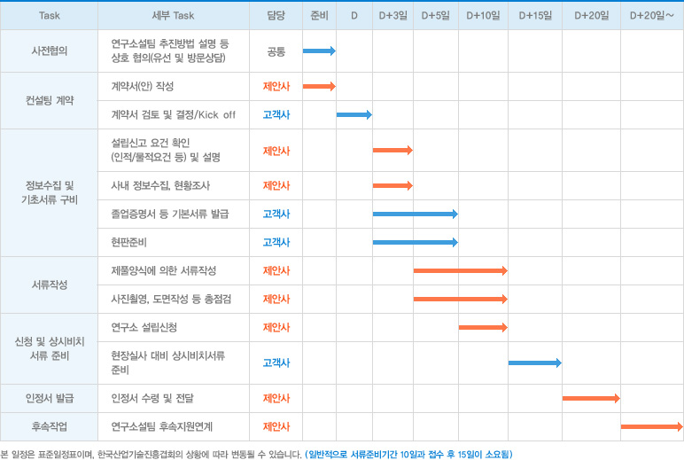 - 대표이사의 경우, 연구소장직을 겸임할 수 있으나 전담요원은 될 수 없음