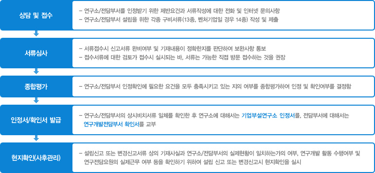 일정요건을 갖춘 연구소와 전담부서를 신고,인정함으로써 각종 조세, 관세, 자금지원 및 병역특례 등의 혜택을 부여하고 기업의 기술개발을 적극적으로 촉진 유도하는 동시에 이들 연구조직을 효율적으로 육성 지원하기 위하여 1981년부터 제정